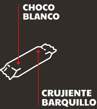 Crujiente barrita de barquillo cubierto de cobertura blanca y con relleno (47%) sabor nata